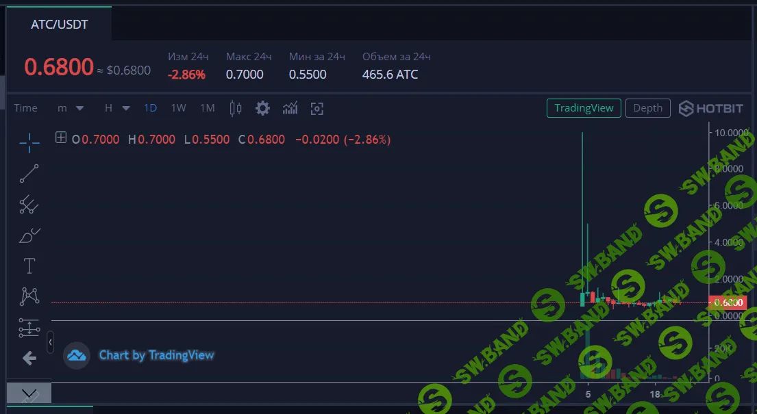 скрин торгов ATC/USDT на бирже хотбит (23.02.2022)