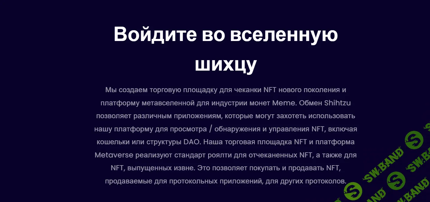 Shihtzu приносит в массы интеграцию NFT и Метавселенной. С торговой площадкой NFT пользователи могут получать доступ, торговать, чеканить и обменивать NFT в интеллектуальной цепочке Binance. Метавселенная Shihtzu создает простую в использовании торговую площадку NFT для частных лиц.