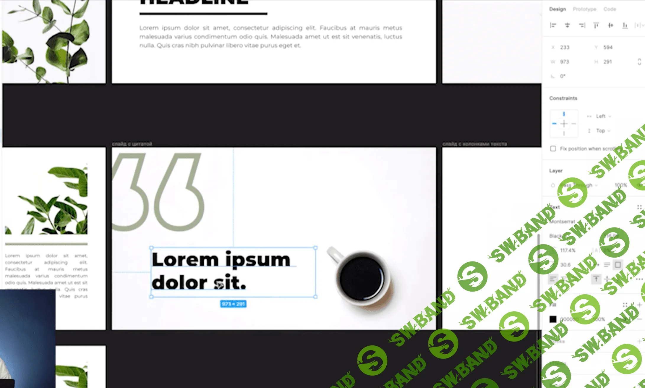 Лореп ипсум, фотки просто абсолютно пустые, контент без цели и причины. Урок называется вроде собираем презентацию, в итоге тема презентации лорем ипсум и контент чашки кофе и какие то нарезанные кусты