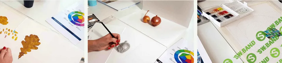- об особенностях работы с акварельными красками;