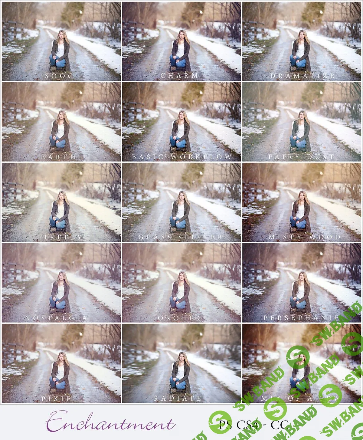 Emily Lucarz's Enchantment набор действий для Photoshop и Photoshop Elements,был создан, чтобы дать вам возможность создать что-то волшебное. В набор входит" секрет Эмили", который можно отметить как ее подпись взгляд, чтобы получить дополнительные мечтательные фоны в помещении или вне. Этот набор содержит все: от базовых настроек до нежных действий кожи до невероятных дымок, матов, тонов и глубоких романтических размытий. Эмили создала действие bring it forward, чтобы помочь сохранить ваши фотографии туманными, но позволить вашему объекту быть минимально выскочил.Это ее самое популярное действие во сне в цветовом наборе, и его можно найти в Enchantment. Чары содержит 35 уникальных действий, которые помогут вам создать магические образы. Чары были созданы как сестра действие набор мечтать в цвете. Его можно использовать для создания очаровательных наружных изображений или для создания мягких, туманных и/или матовых внутренних изображений. У вас есть полный творческий контроль с каждым действием. Все наборы действий Эмили были созданы, чтобы быть в состоянии использоваться вместе.