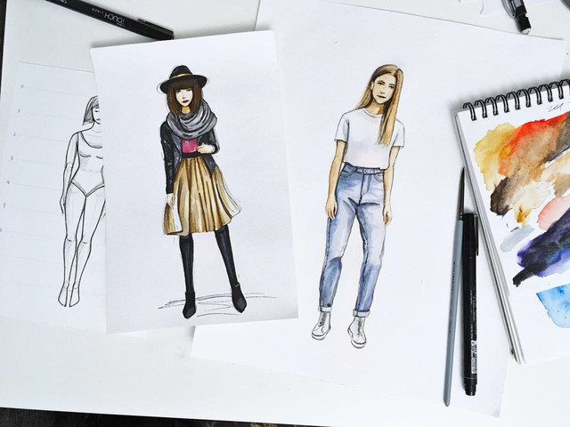рисуем fashion- look, познакомимся с особенностями изображения цвета, тканей, фигуры модели, рисуем стильный образ