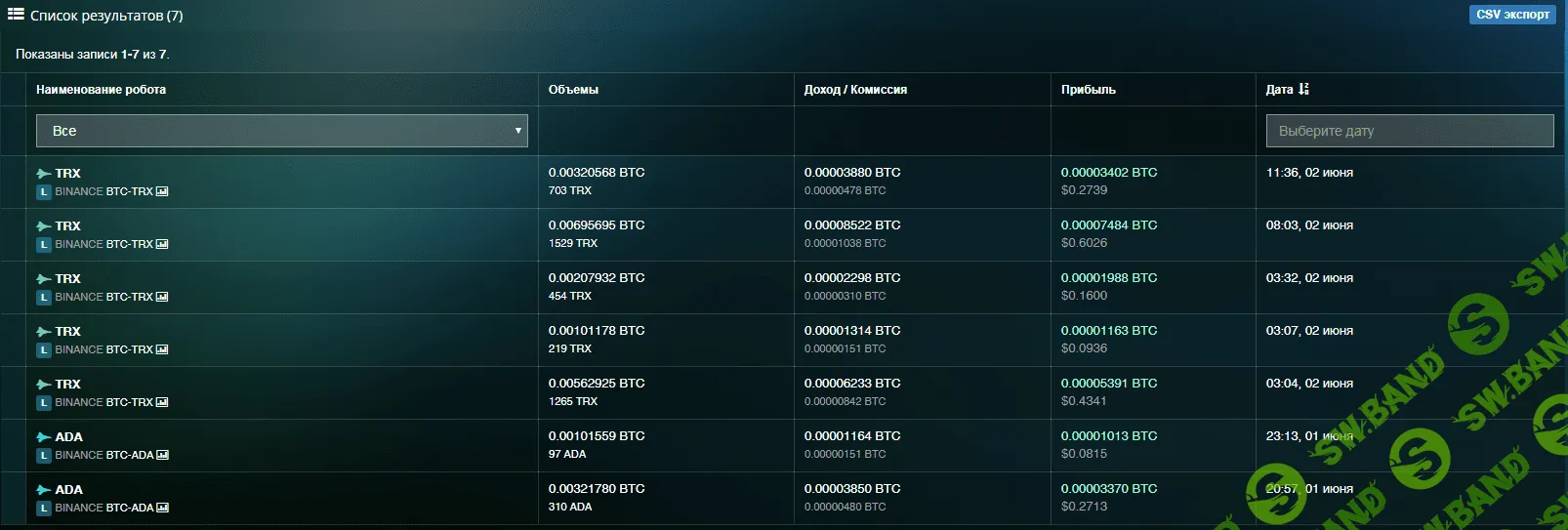 Как я писал в самом начале, боты торгуют на биржах Binance, Poloniex, Bittrex и Bitfinex.