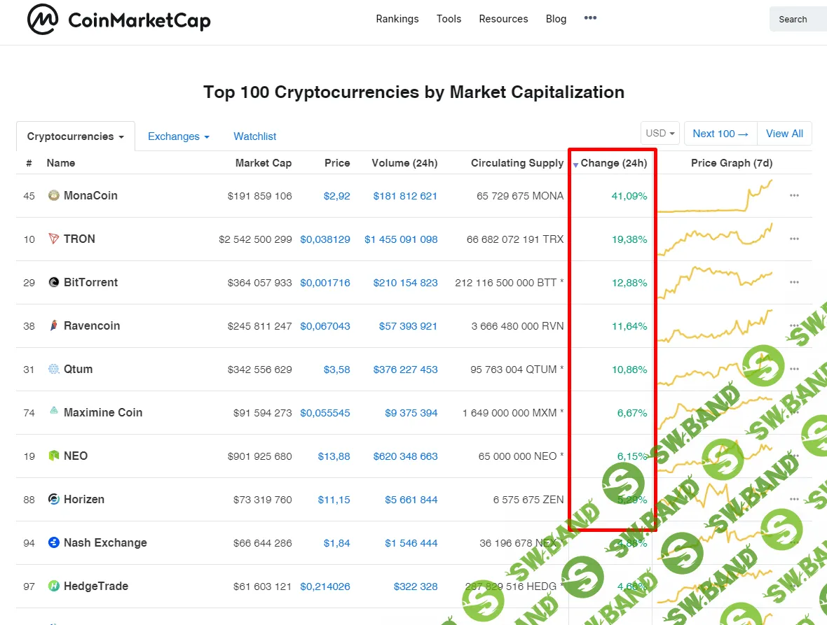 А на этом скрине самые растущие. И как вы заметили, я как раз выбрал пару TRON (TRX). Потому что идет рост, большой объем и маленькая стоимость (что бы больше было страховочных сделок)