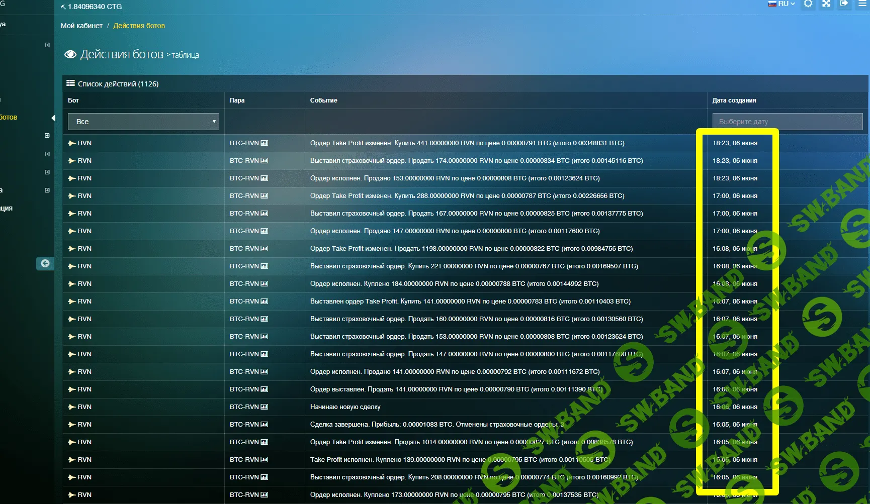 И на самой бирже, вы можете увидеть как боты выставляют ордера