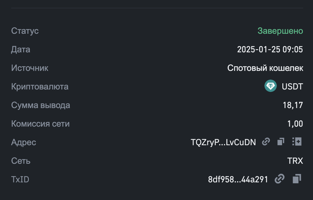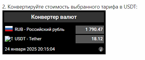 2025-01-25 09:05 (GMT+5) Алматы. 18,17 USDT тариф Разбойник.