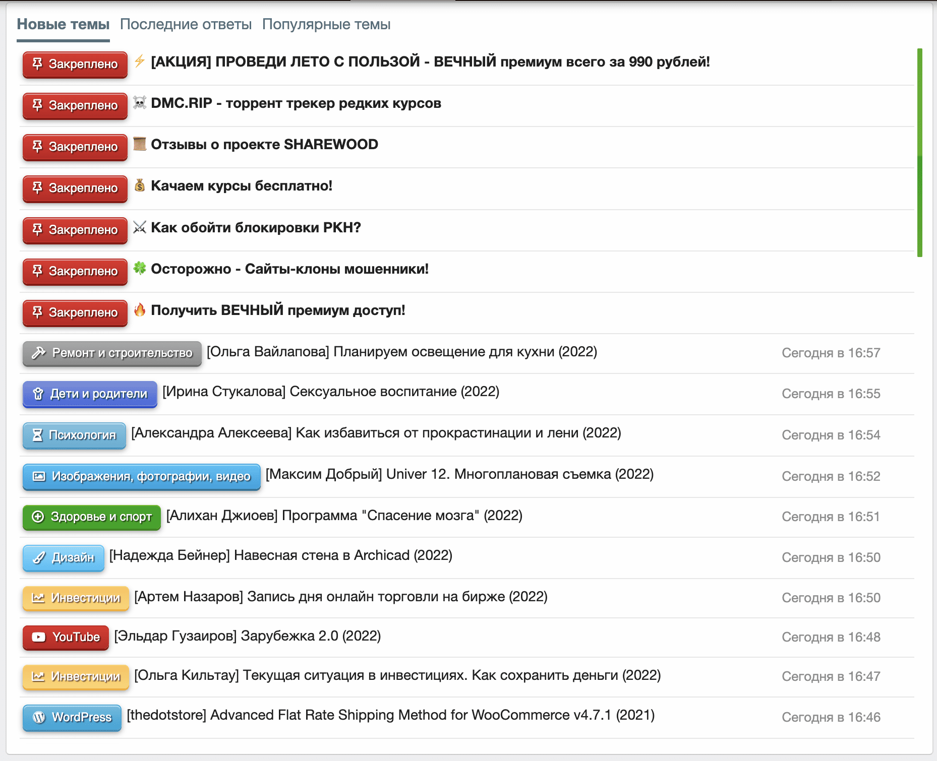 Добрый день! Скорее всего вы просто заходите в такие моменты, когда на главной заливаются именно эзотерика и плагины. Сейчас для примера проверил и курсы на другие различные темы в большинстве.