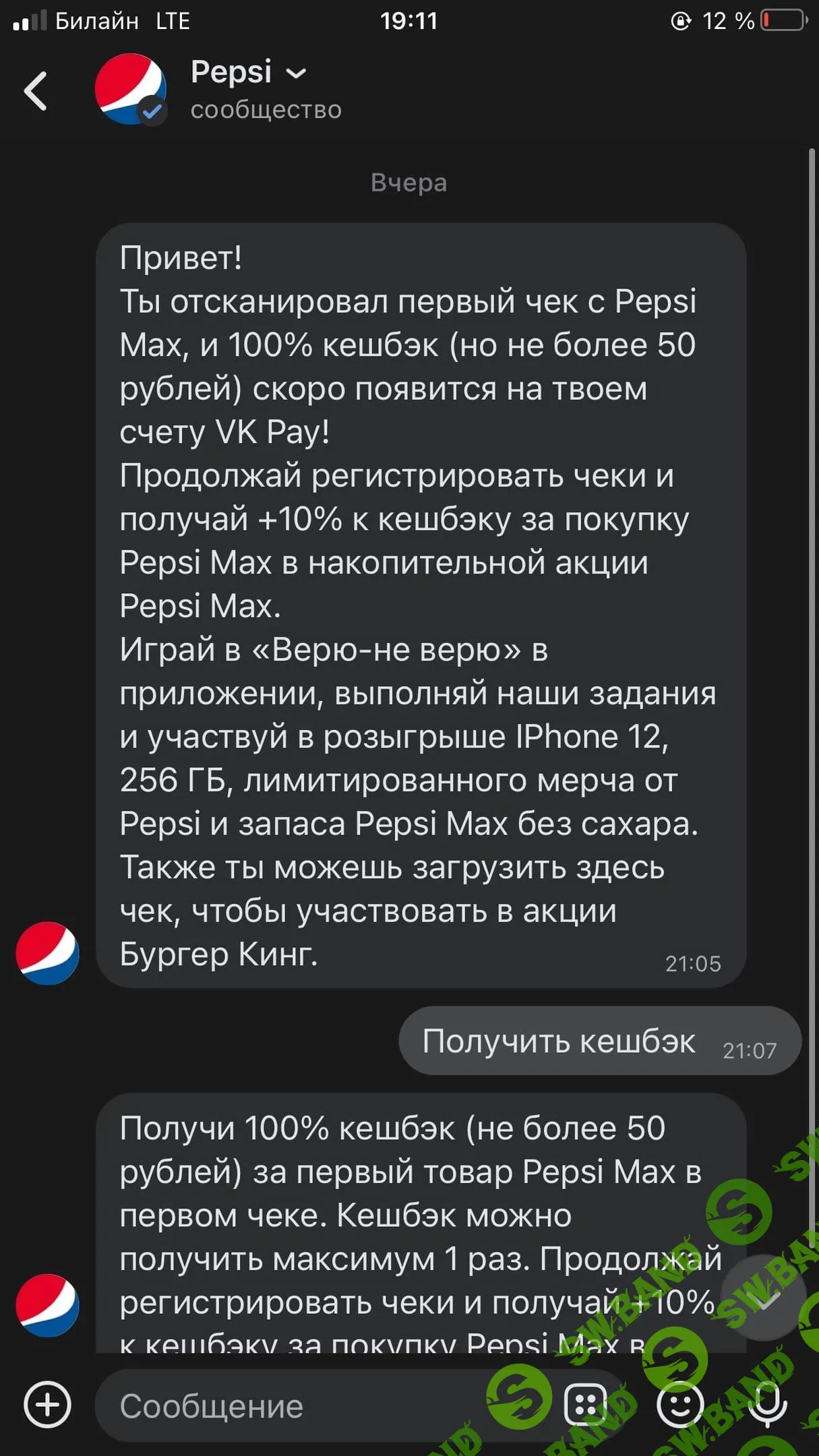 P.S Создал второй аккаунт VK, чтобы с другой страницы чек отсканировать, можно ещё девушку или друзей попросить (обязательно пробивать Pepsi в разных чеках).