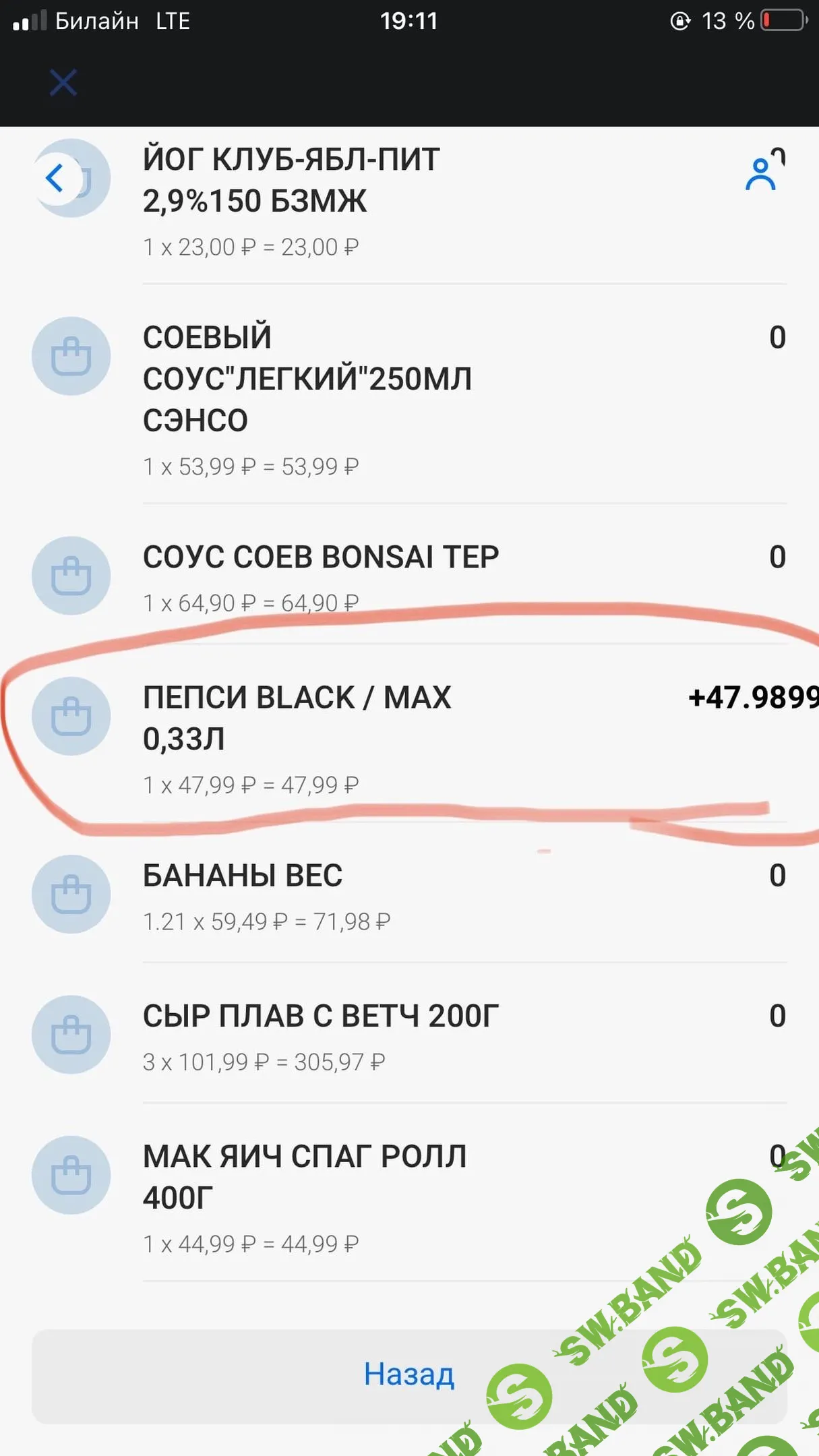 Зная это, либо берём товар до 50 рублей за бесплатно, либо свыше и получаем 50 рублей кэшбеком.