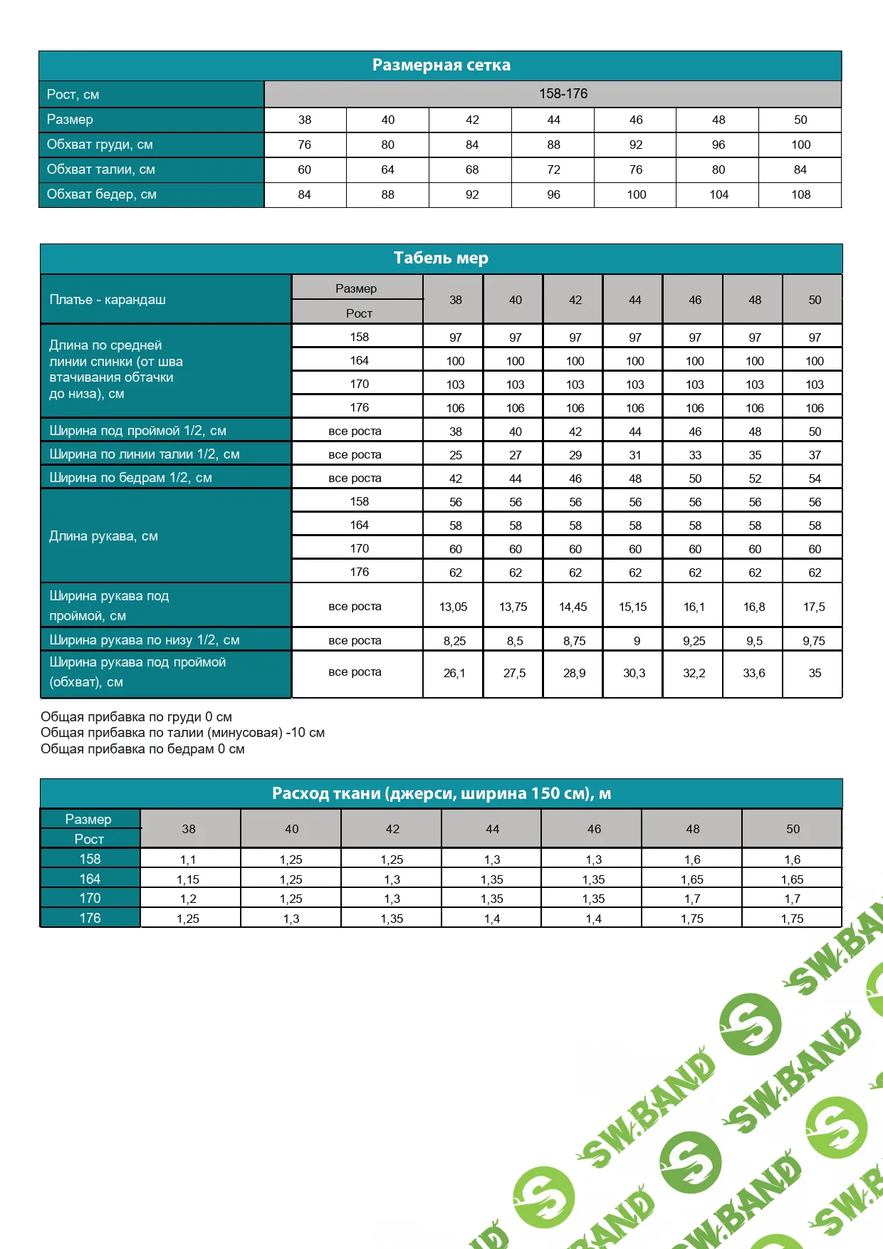 Варианты размеров: 38-50 для роста в диапазоне 158, 164, 170, 176.